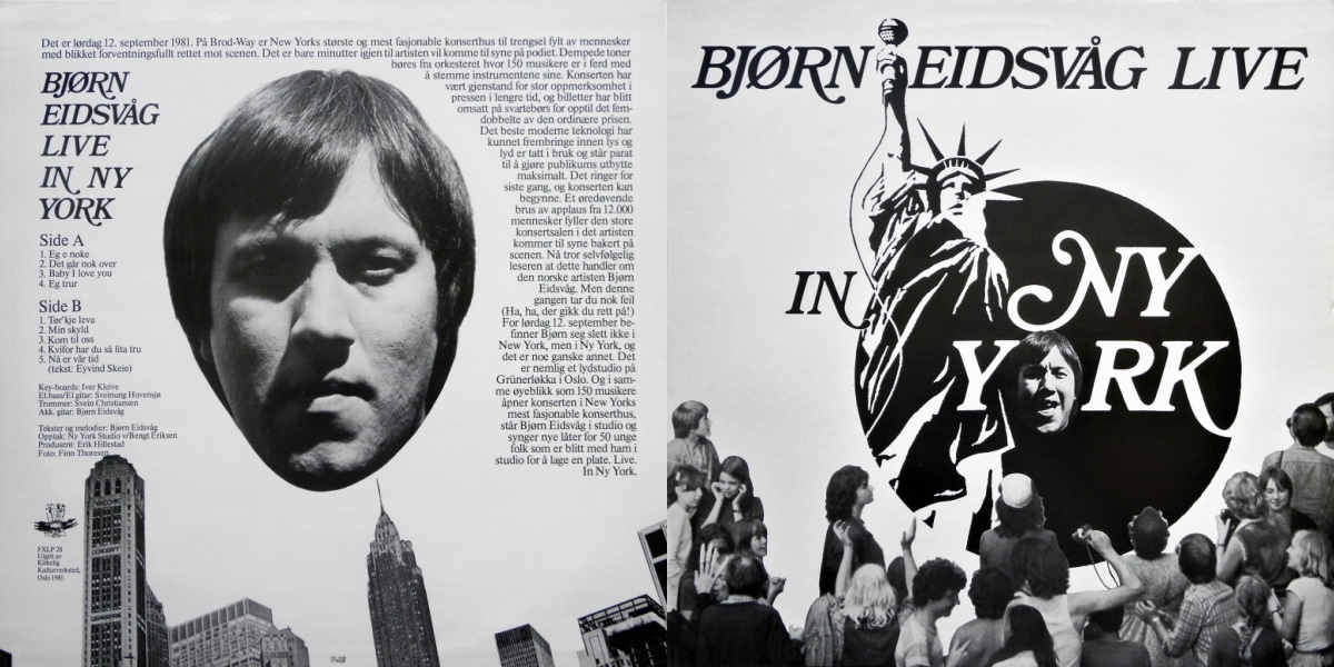 Live in Ny York is the first live album by the Norwegian singer and songwriter Bjørn Eidsvåg, released on the Norwegian indie label Kirkelig Kulturverksted in 1981. The album was recorded September 12, 1981, live at Ny York, a small studio located in Oslo, Norway, with 50 people joining the concert. The album was engineered by Bengt Eriksen with label head Erik Hillestad producing. All songs written by Bjørn Eidsvåg, except track B5 featuring lyrics by Eyvind Skeie.