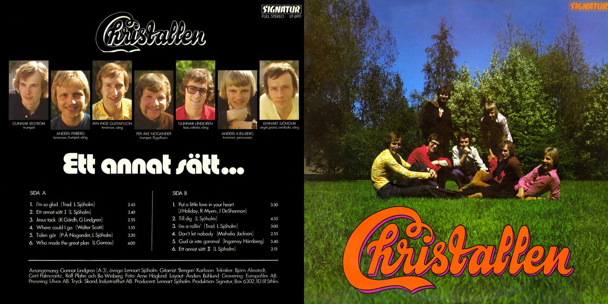 Christallen features Lennart Sjöholm on piano, organ, harpsichord (cembalo), and vocals, Gunnar Lindgren on bass, celesta, and vocals, and Anders Kjellberg on drums and percussion, as well as a brass section featuring Jan-Inge Gustafsson on tenor saxophone and vocals, Anders Friberg on tenor saxophone, trumpet, and vocals, Gunnar Ekström on trumpet, and Per-Åke Nogander on trumpet and flugelhorn. Guitar provided by session musician Bengt “Bengan” Karlsson.