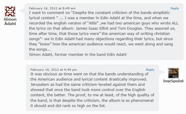 In his review of the album, CCM Magazine critic Brian Quincy Newcomb wrote: “When Edin Adahl released its 1983 album, Alibi, they single-handedly raised the standard for production values that we would expect from Christian artists.”