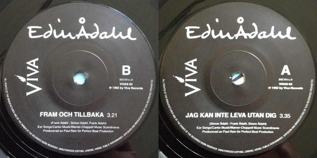 Jag kan inte leva utan dig – b/w “Fram och tillbaka” – is a two-sided 7-inch vinyl single by the Swedish pop/rock band Edin-Ådahl, released on the Swedish gospel label Viva Records in 1992 (catalogue number VIVAS 03). Both tracks taken from the band’s full-length album entitled Kosmonaut Gagarins Rapport, released on Viva Records the same year, recorded and mixed by Torkel Odéen at Edin Music Studio in Gävle, Sweden; with Paul Rein producing for Perfect Beat Production. Both track co-written by brothers Frank and Simon Ådahl.