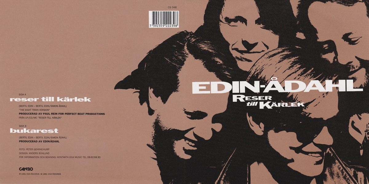 Reser till kärlek – b/w “Bukarest” – is a two-sided 7-inch vinyl single by the Swedish pop/rock band Edin-Ådahl, released on the Swedish gospel label Cantio Records in 1991, at this point in time a Viva Records imprint (catalogue number CS 048). Both tracks taken from the band’s full-length album entitled Reser till kärlek, released on Cantio Records the same year, recorded at Edin Music Studio in Gävle, Sweden; with the band producing and arranging. (The title track actually starts of with a very short acapella intro not featured on the album version while the B-side was featured as a bonus track on the CD edition of the album only.) The title track, “Reser till kärlek (The Eight Train Version)”, was produced by Paul Rein for Perfect Beat Productions, with the track on the flip-side self-produced by the band. Both tracks co-written by band members Bertil Edin and Simon Ådahl.