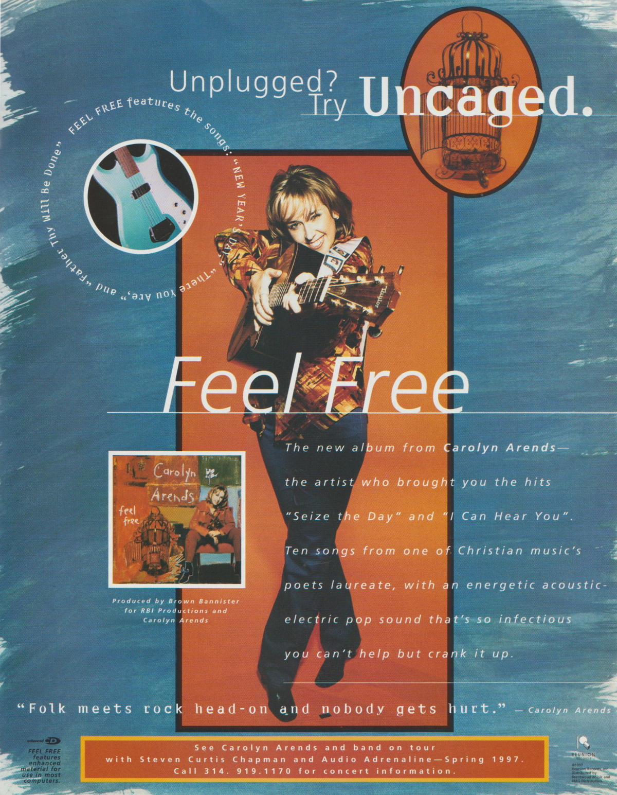 A full-page advertisement for Carolyn Arends’ album Feel Free was featured in the March 1997 issue of CCM Magazine.