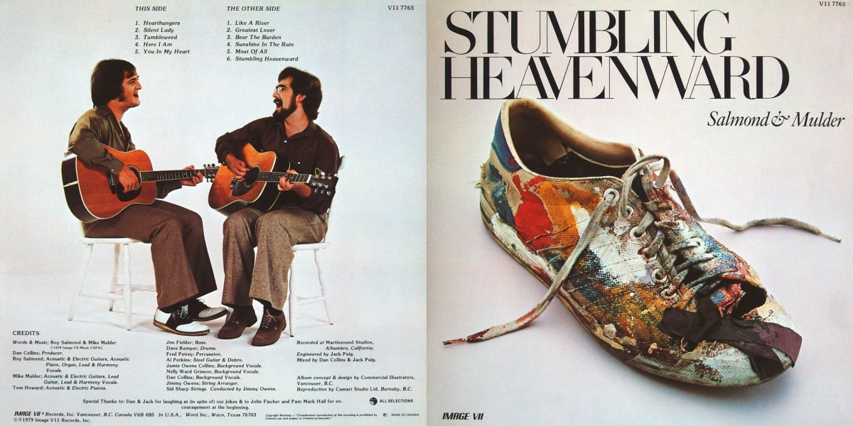 At their coolest Roy Salmond and Mike Mulder muster up some satisfying cruising country rock and crunchy r&r with choice guitar leads. Less of interest are the typical radio-ready MOR ballads. In between are a few likable orchestrated tunes in the Seals & Crofts, America and CSN direction. Clean production. Familiar names in the credits include Tom Howard, Al Perkins, Jamie Owens-Collins and Nellie Ward. US pressing has a photo of the twosome on the cover. The Canadian release bears the title Stumbling Heavenward and has a picture of a paint-splattered tennis shoe. [Ken Scott, The Archivist, 4th Edition]