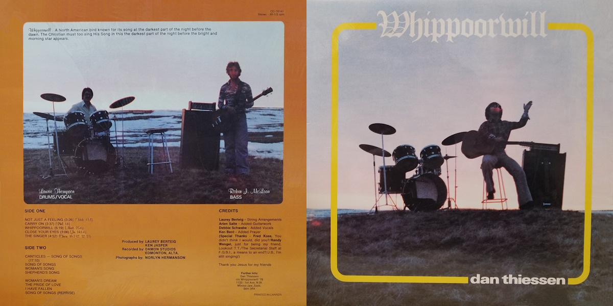 Saskatchewan comes this excellent acoustic rock private press that rings true with the spirit of early John Michael Talbot. Dan is the guitar man, assisted by Robin J McLean on bass and Laurie Thompson on drums. Also Arlen Salte providing additional guitar and Debbie Schwabe helping on vocals. Some electric guitar leads, flute and background synth, but mostly the trio playing in a natural unplugged format. Typically vibrant briskly strummed songs, often changing mood midstream for slower passages. Side two contains the 17-minute «Canticles – Song Of Songs», comprised of titles like «Woman’s Song», «Shepherd’s Song», «Woman’s Dream», «The Pride Of Love» and «I Have Fallen», inspired by The Song Of Solomon. Definitely one of the finer pieces to come out of Canada. “Whippoorwill – a North American bird known for its song at the darkest part of the night before the dawn. The Christian must too sing His Song in the darkest part of the night before the bright and morning star appears.” [Ken Scott, The Archivist, 4th edition]