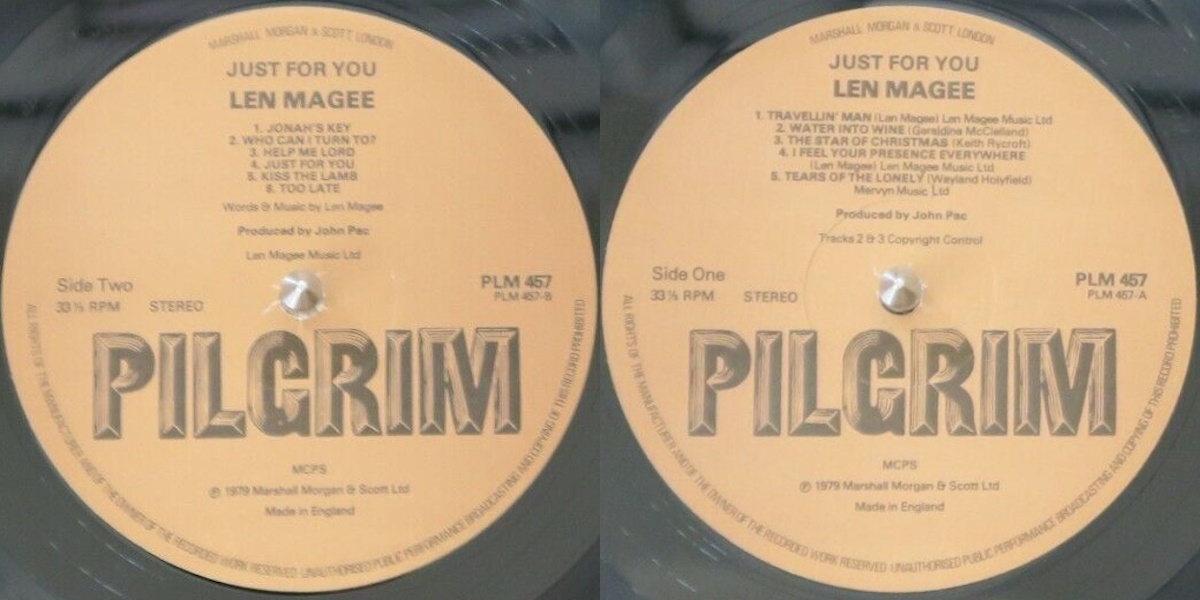 Just for You is an album by the British-Australian singer and songwriter Len Magee, released in the UK on Pilgrim Records in 1979, a division of Marshall Morgan & Scott. The album was recorded and mixed by Dave Aston and Les Moir at ICC Studios in Eastbourne, England; with John Pac of Parchment fame producing. Strings and brass arranged by Dave Anfield. All songs written by Len Magee except “Water Into Wine” written by Geraldine McClelland, “The Star of Christmas” written by Keith Rycroft, and “Tears Of The Lonely” written by Wayland Holyfield.