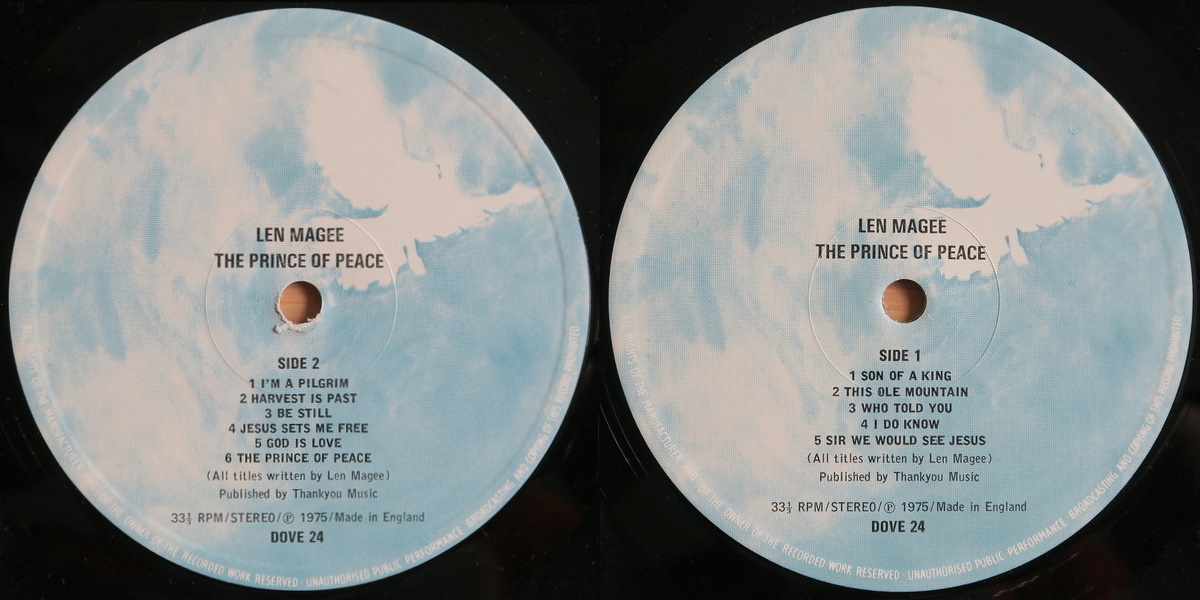 Len Magee - The Prince of Peace (Dovetail Records 1975) LP labels, Side2 and Side1