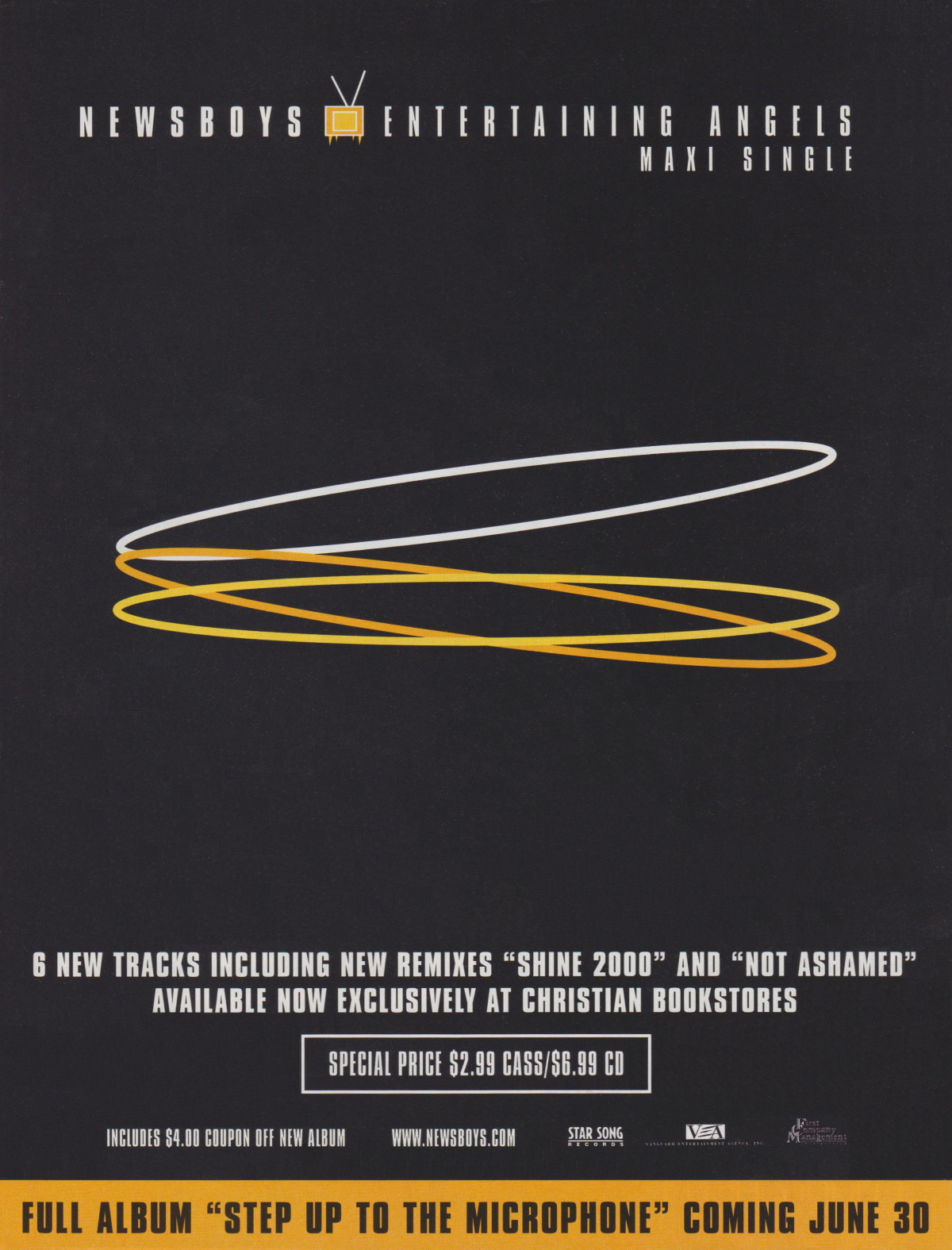 A full-page advertisement for Newsboys’ Entertaining Angels Maxi Single was featured in the May 1998 issue of CCM Magazine.