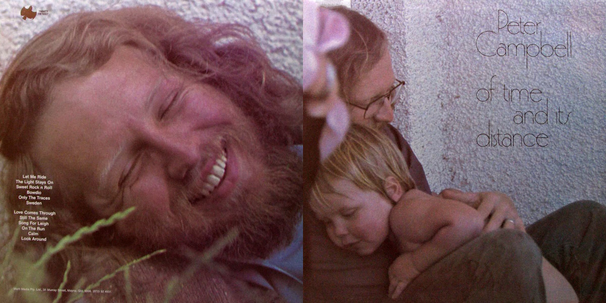 Those who connect with the artful folk style of artists like Tim Buckley, Bruce Cockburn, Jeff Johnson and Robin Runge/Crow will definitely want to tune in to the music of Australian Peter Campbell. Of Time And Its Distance gives lots of variety for the listener, with Campbell’s 12-string guitar typically being the central theme. «Let Me Ride» opens the album on a strong progressive note, intelligent lyrics backed by a rich canopy of 12-string, electric guitar, synthesizer and organ. Good plugged-in riffs can be found on the appropriately named «Sweet Rock N Roll». Many of the songs, however, are quiet-natured: «The Light Stays On» with its dreamy mood; the tin whistle-backed «Only The Traces»; a moving piano ballad «Still The Same». «Song For Leigh» is a beautiful fragile acoustic song, lovingly accompanied by cello. «Sweden» begins softly, building up to a dynamic climax of electric guitar. Gets into bluegrassy banjo mode for «On The Run» (“it’s living as I need it for the deed that Jesus done, ooh we got tomorrow on the run”). A touch of George Harrison-styled guitar on «Love Comes Through». Foldout cover with lyrics. Among the best Australia has to offer. [Ken Scott, The Archivist, 4th edition]