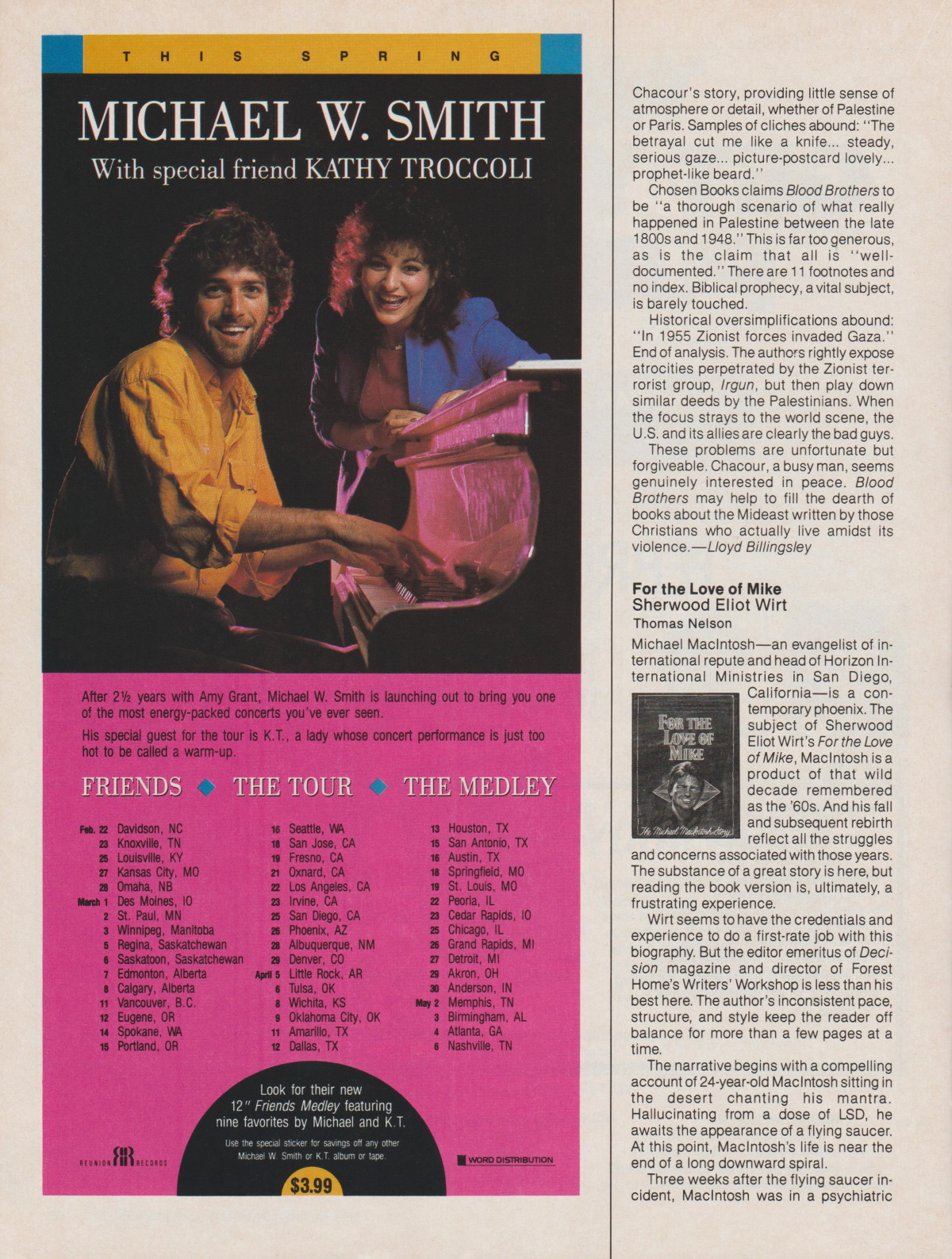 An advertisement for Michael W. Smith and Kathy Troccoli’s 1985 Tour – and their Medley Maxi-single – was featured in the February 1985 issue ofCCM Magazine.