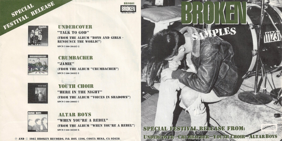 Broken Samples, sub-titled Special Festival Release from: Undercover – Crumbacher – Youth Choir – Altar Boys, is a four-track multi-artist 45RPM 7-inch vinyl EP featuring tracks from four artists signed to the American alternative rock label Broken Records, released on Broken Records in 1985, a sub-label of Maranatha! Music, distributed by Word.