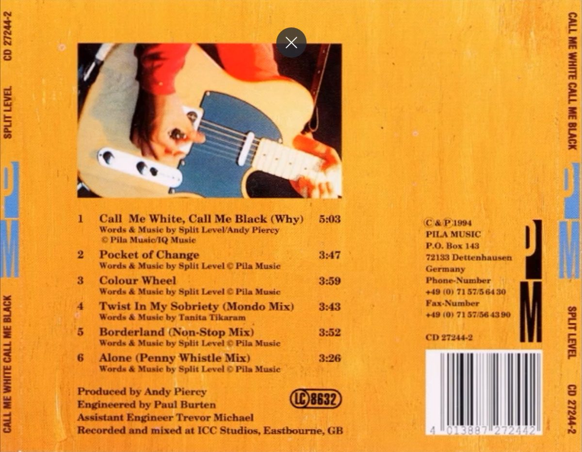 Call Me White Call Me Black is a six-track CD-EP by the British rock band Split Level, released on the German gospel label Pila Music in 1994. The EP was recorded and mixed by Paul Burten assisted by Trevor Michael at ICC Studios in Eastbourne, England; with Andy Piercy of After The Fire fame producing.