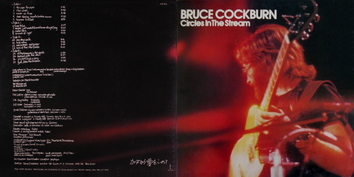 Note: Simultaneously released on 8-track tape, cassette, and 12-inch vinyl double LP by True North Records with the vinyl edition housed in a gatefold sleeve. Later re-issued on CD. Available at Bandcamp: https://brucecockburn.bandcamp.com/album/circles-in-the-stream-deluxe-edition