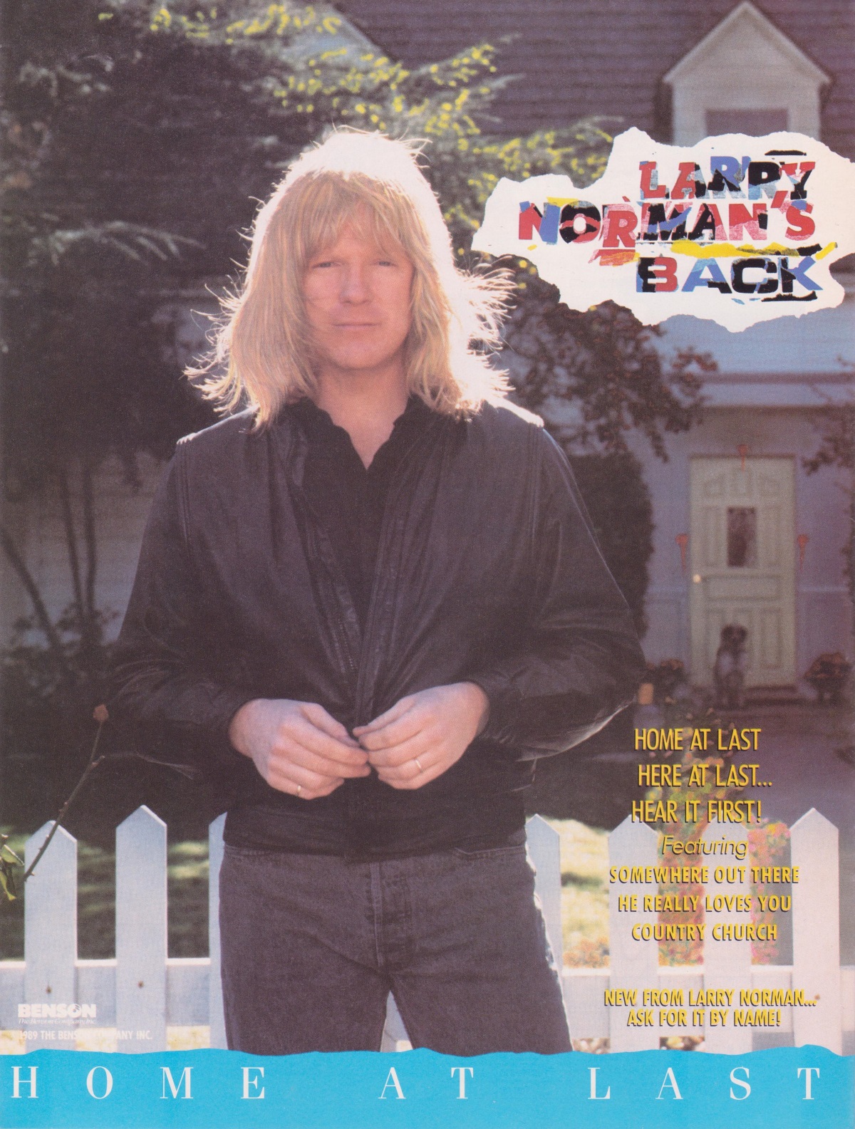 A full-page advertisement for Larry Norman’s Home at Last was featured in the May 1989 issue of CCM Magazine.