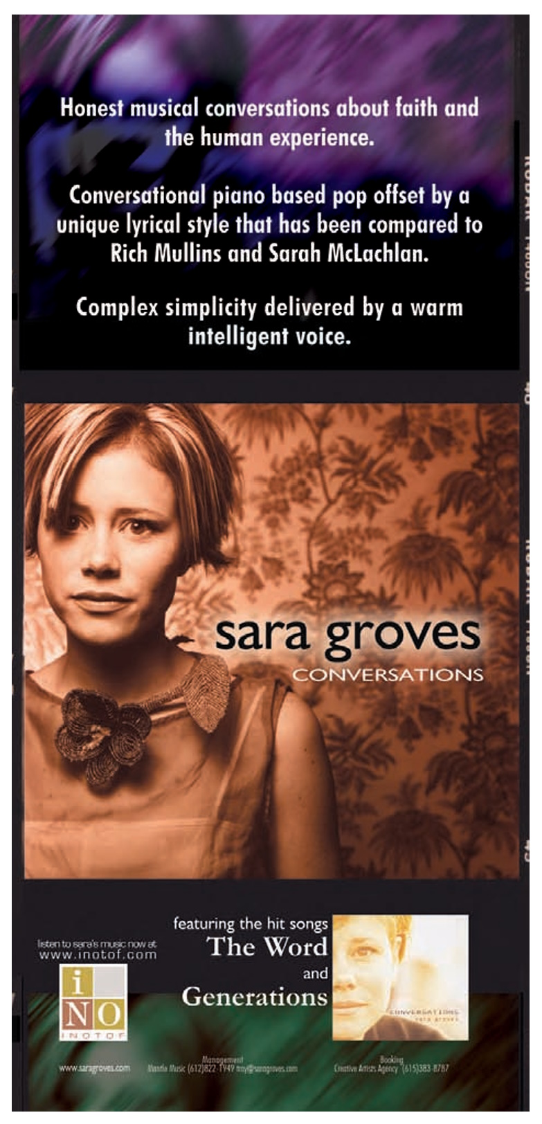 An advertisement for Sara Groves’ Conversations was featured in the April 2001 issue of CCM Magazine.An advertisement for Sara Groves’ Conversations was featured in the April 2001 issue of CCM Magazine.
