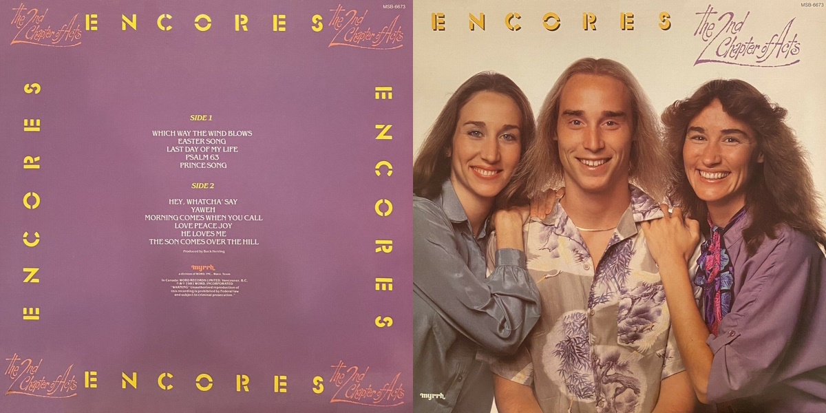 Encores is a compilation album by the American vocal trio 2nd Chapter of Acts, released on Myrrh Records in 1981, a division of Word. It collects songs from the group’s first two Myrrh Records albums.