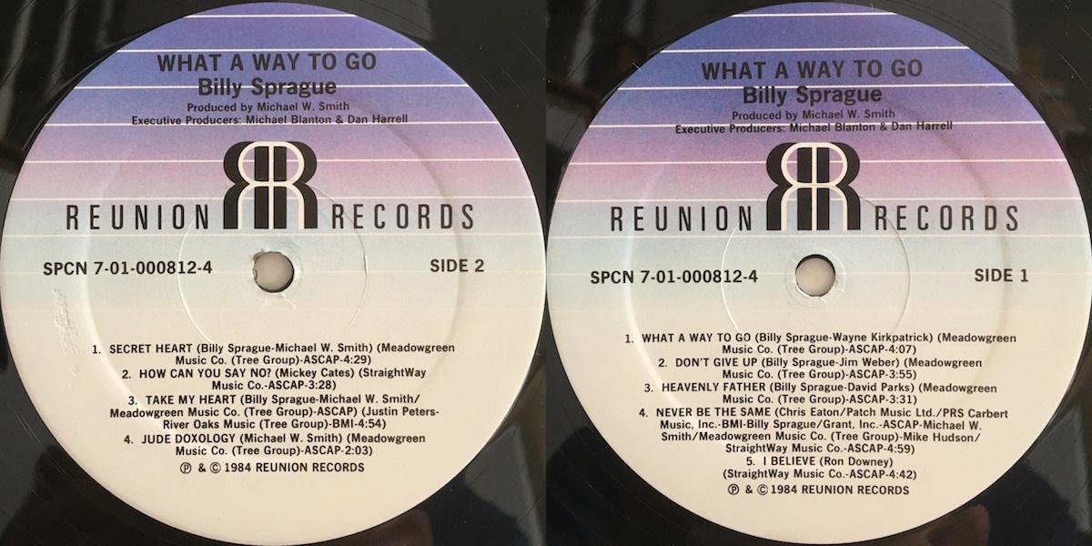 Billy Sprague - What A Way To Go (Reunion Records 1984) LP labels, Side2 and Side1