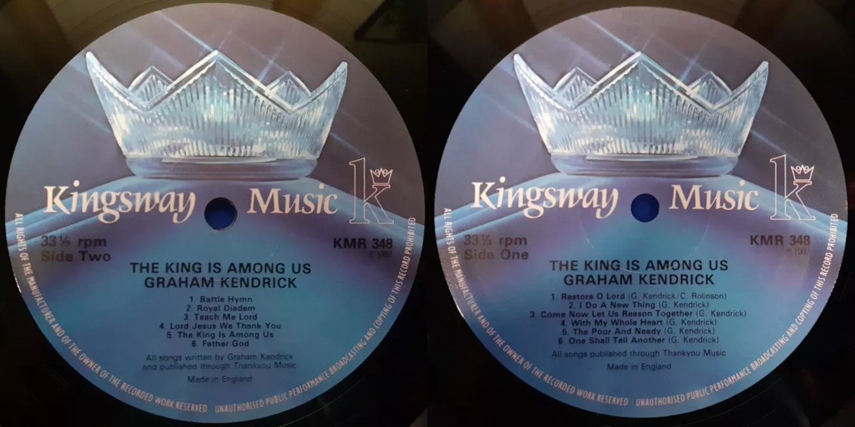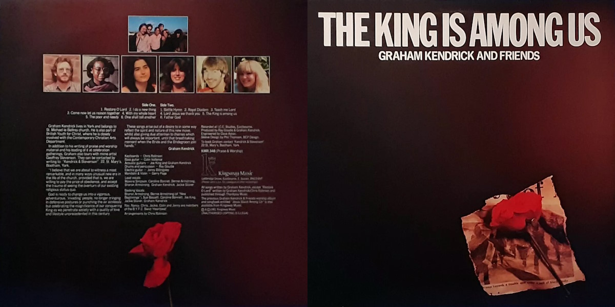The King is Among Us is a praise & worship album by the British singer and songwriter Graham Kendrick (credited “Graham Kendrick and Friends”), released on Kingsway Music in 1982. The album was recorded by Dave Aston at ICC Studios in Eastbourne, England; 1981, with Ray Goudie and Graham Kendrick producing. Arrangements by Chris Rolinson. All songs written by Kendrick except “Restore O Lord” co-written with Rolinson. (“Restore O Lord” was re-recorded in 2010 for The Very Best of Graham Kendrick.)