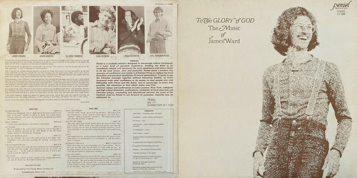 To the Glory of God is the debut album by American singer, songwriter, and keyboardist James Ward, independently released on Peniel in 1973, published and distributed by Peniel Publications. The album was recorded by Gretchen Zoeckler and John Kryda at Shaggy Dog Studios in Stockbridge, Massachusetts. Technical assistance by Don Leskiw. All songs written and arranged by James Ward. Produced by The Peniel Bible Conference, Schenectady, New York.