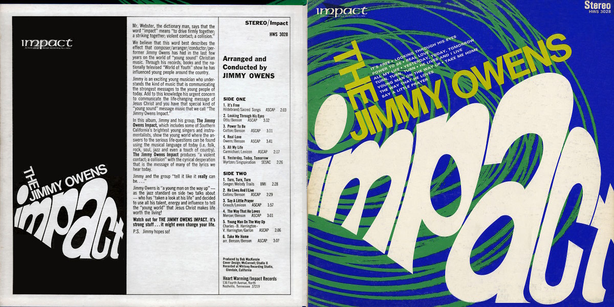Jimmy Owens is “a young man on the way up” – as the jazz standard on side two talks about – who has “taken a look at his life” and decided to use all his talent, energy and influence to tell the “young world” that Jesus Christ makes life worth living!