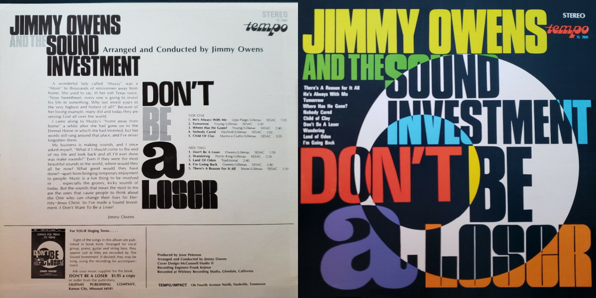 Don’t Be a Loser is an album by the American group Jimmy Owens and The Sound Investment, released on Tempo/Impact Records in 1970. The album was recorded and mixed by Frank Kejmar at Whitney Recording Studios in Glendale, California; with Jesse Peterson producing. Arranged and conducted by Jimmy Owens.