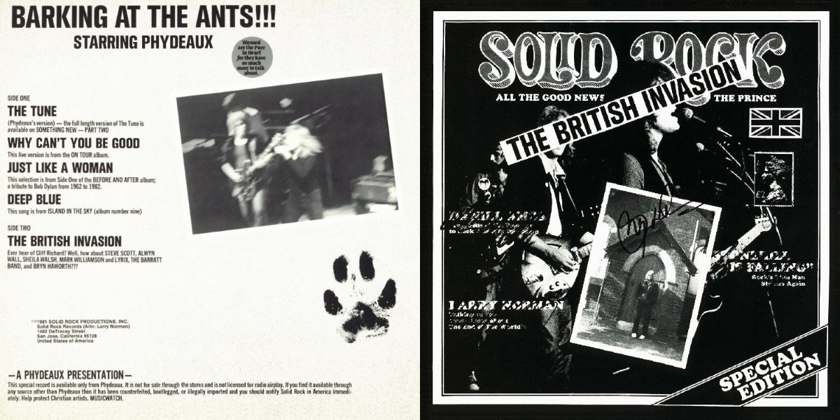 Note: Tracks included in the “The British Invasion” medley: Alwyn Wall – “Doctor, Doctor” / “Let The Light Come” / “Hold On”; Sheila Walsh – “You’re So Important To Me” / “Love In My Life” / “Here With Me”; Lyrix – “Don’t Turn Your Back On Jesus” / “Midnight Diamond” / “All Very Well”; Barratt Band – “Bad Mean World” / “Coming Of The Man” / “My Spirit’s Free” / “Your Love”; Bryn Haworth – “Egypt” / “The Gap” / “I Can Do All Things” / “It Could Have Been Me” / “Send Down The Rain”. “The Tune (Almost)” and “The British Invasion” was also released as a two-sided 7-inch vinyl promo single by Phydeaux.