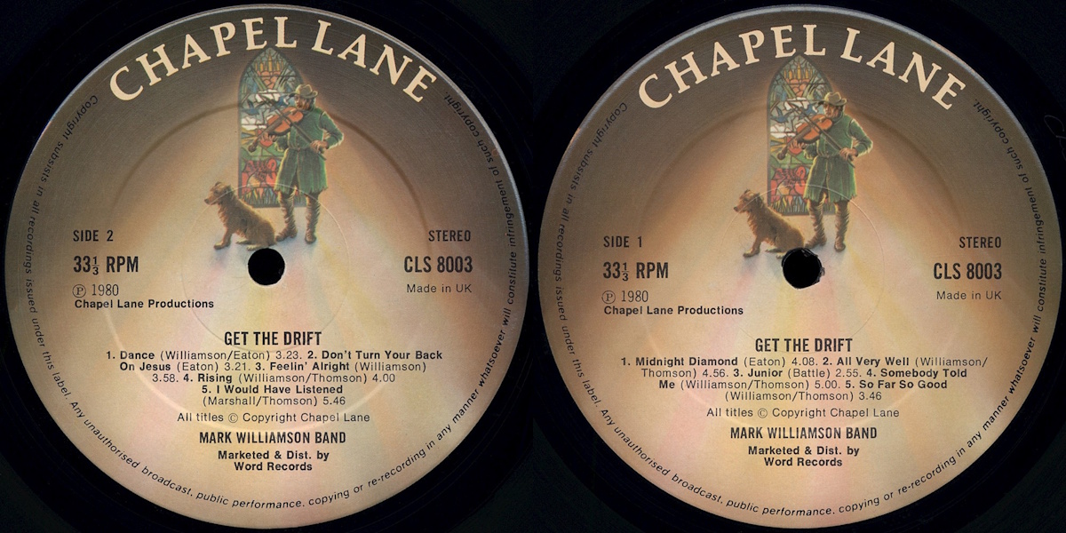 Get the Drift? is the debut album by the British pop/rock outfit Mark Williamson Band, released on Chapel Lane in 1980, marketed and distributed by Word. (Chapel Lane was a newly established independent British label releasing superlative – and mostly cutting edge – albums by Christian artists, Get the Drift? being their third release, Catalog Number CLS 8003.) The album was produced, recorded, and mixed during May, June, and July 1980 by Paul Cobbold at Chapel Lane Studios in Hereford, England; with band member Mark Williamson co-producing.