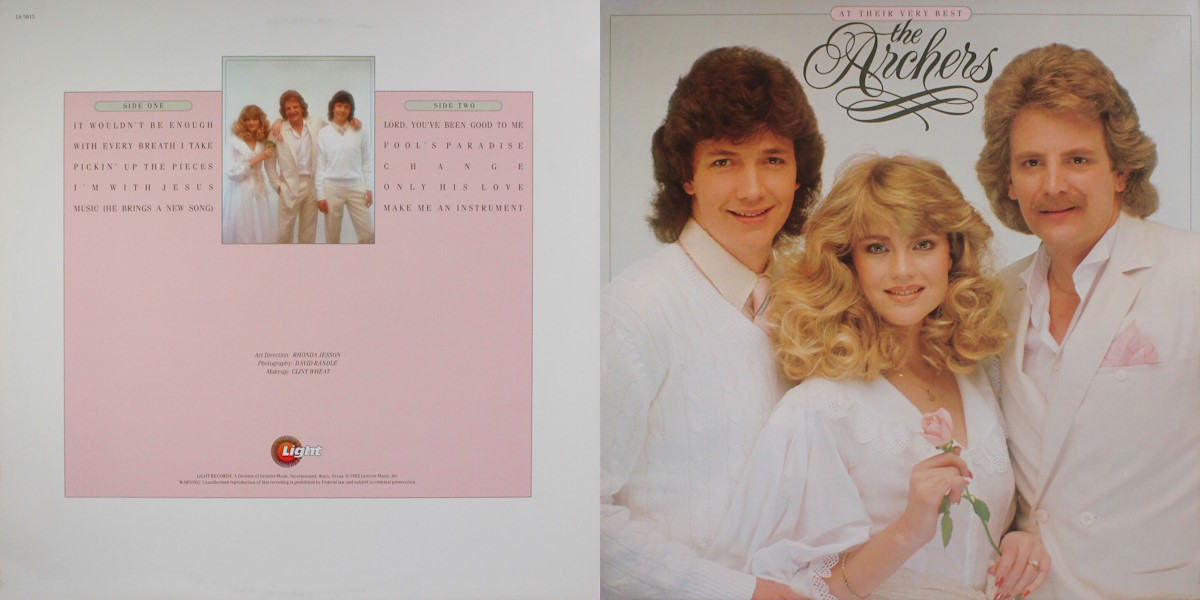 This collection of the Archers’ popular songs of the past decade proves their versatility, covering mainstream pop, light jazz and near-choral arrangements. The retrospective finds several tunes holding up well over the years, including «It Wouldn’t Be Enough», «Picking Up The Pieces», the soothing «Music», and the popular «Make Me An Instrument». [Billboard Magazine, September 11, 1982, Top Album Picks column – Gospel section (Survey for week ending 9/11/82)]