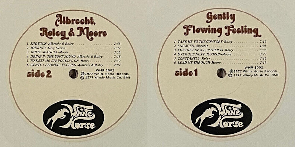 Albrecht, Roley, and Moore - Gently Flowing Feeling (White Horse Records 1977) LP labels, Side2 and Side1