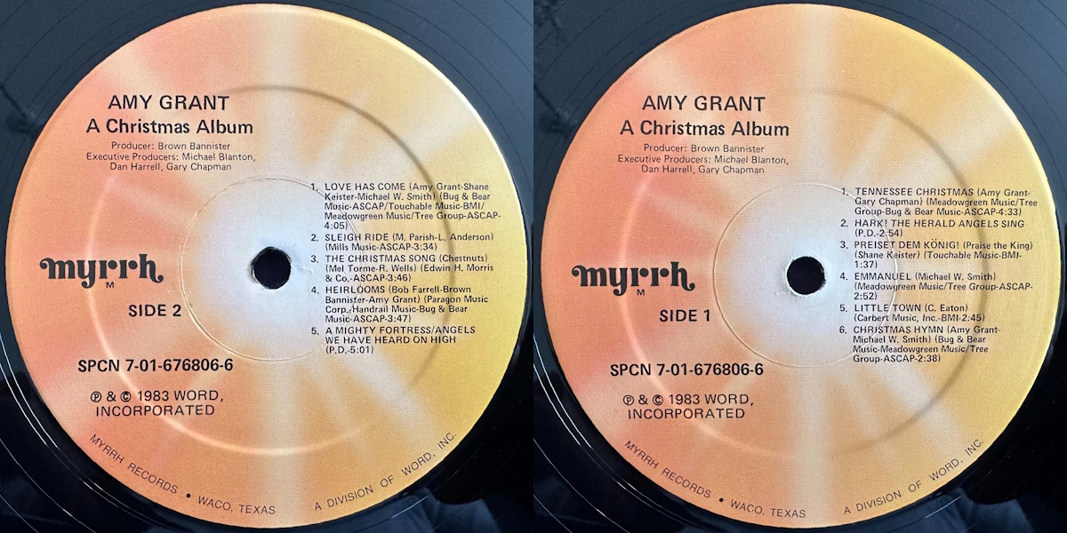 A Christmas Album is the first Christmas album by the American singer and songwriter Amy Grant, released on Myrrh Records in September 1983, a division of Word. The album was produced by Brown Bannister.