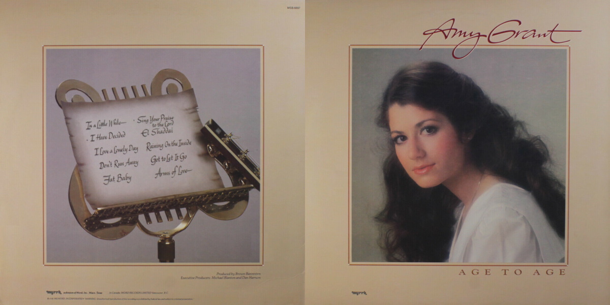 Age to Age is the fourth studio album by the American singer and songwriter Amy Grant, released on Myrrh Records in May 1982, a division of Word. The album was recorded by Jack Joseph Puig at Caribou Ranch Recording Studios in Nederland, Colorado; and at Gold Mine Studio and Sound Stage Studios in Nashville, Tennessee; with Brown Bannister producing. Mixed by Puig at Mama Jo’s Recording Studio in North Hollywood, California. (According to label vice president Dan Johnson, they had the finished album in-house for five months – “This gave us a lot of time to develop in-store merchandising and get our people excited about the album by playing it for them.”)