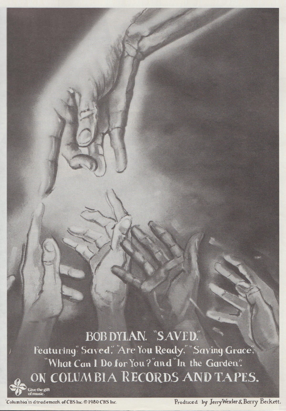 A full-page advertisement for Bob Dylan’s Saved was featured in the June 21, 1980 issue of Billboard Magazine.