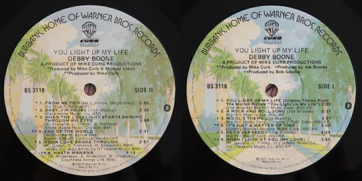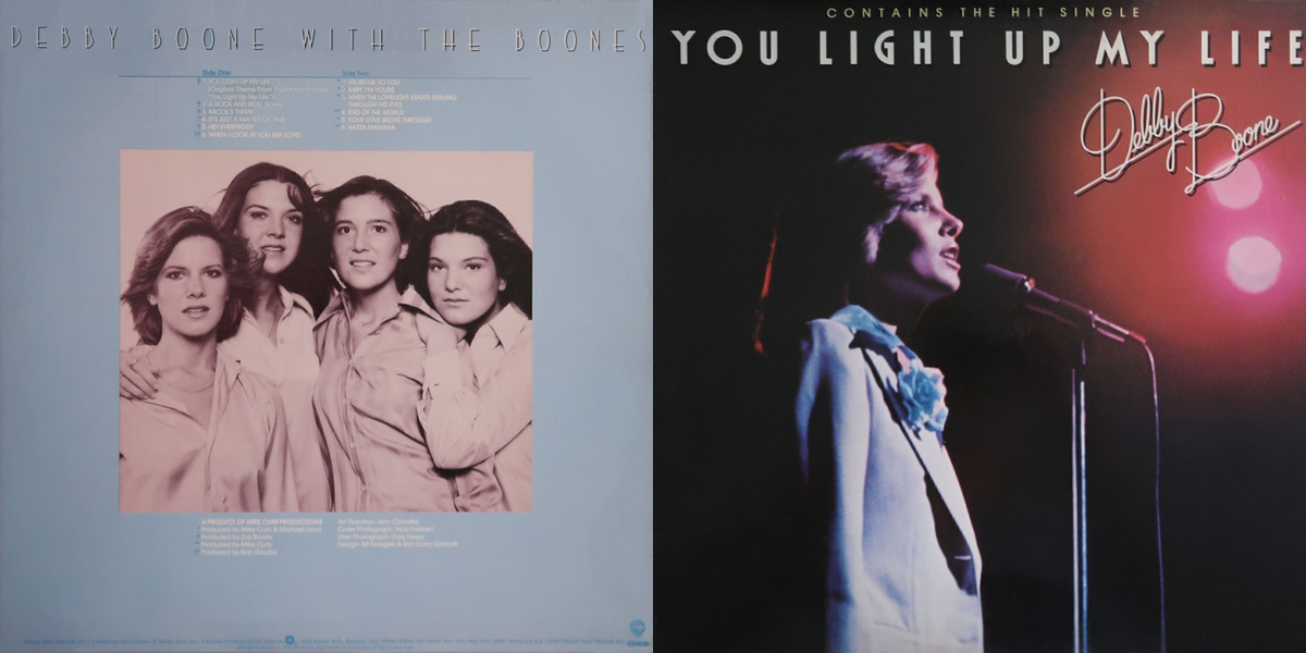 You Light Up My Life is the solo debut album by the American pop singer Debby Boone, released on Warner Bros. Records in 1977. The album was produced by Bob Gaudio (track A6), Joseph Brooks (tracks: A1 to A3, A5), Michael Lloyd (tracks: B1 to B3, B5), and Mike Curb (tracks: A4, B1 to B6). A Product of Mike Curb Productions.