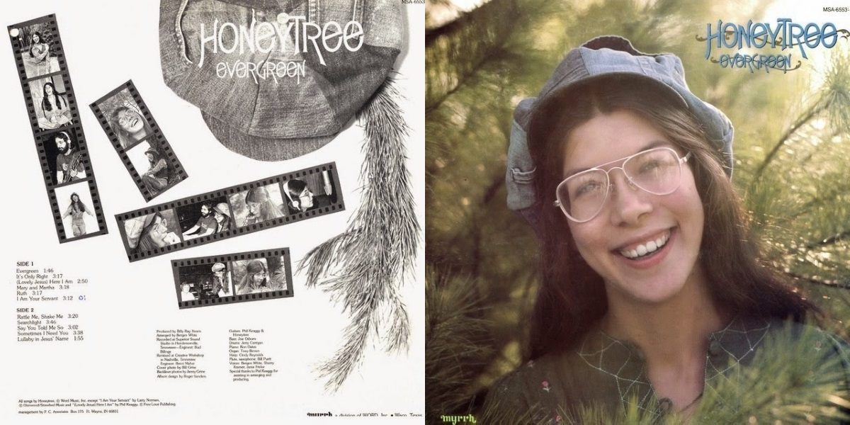 Evergreen is the third album by the American singer and songwriter Honeytree (a.k.a. Nancy Henigbaum), released on Myrrh Records in January 1976, a division of Word. The album was recorded by Bud Billings at Superior Sound Studios in Hendersonville, Tennessee; with Billy Ray Hearn producing. Mixed by Brent Maher at Creative Workshop in Nashville, Tennessee. Arranged by Bergen White. Phil Keaggy also assisted in arranging and producing the album (and did as well play guitar). All songs written by Honeytree except “(Lovely Jesus) Here I Am” written by Phil Keaggy and “I Am Your Servant”, a song written by Larry Norman and featured on his 1976-album, In Another Land.