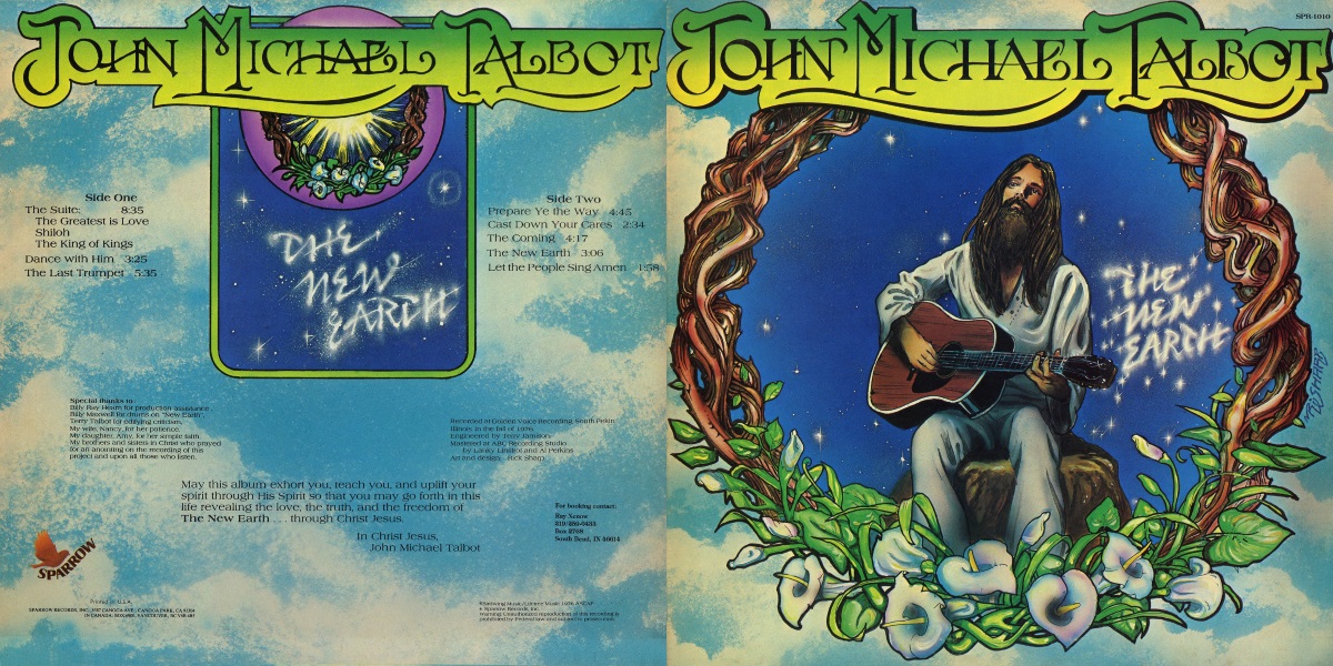 The New Earth is the sophomore solo album by the American singer and songwriter John Michael Talbot of Mason Proffit fame, released on Sparrow Records in 1977, distributed by Word. The album was recorded in the fall of 1976 by Terry Jamison at Golden Voice Recording Studios in South Pekin, Illinois; and was produced by John Michael Talbot with production assistance by Billy Ray Hearn. Mastered by Al Perkins and Lanky Linstrot. All songs composed by John Michael Talbot. (Trivia: Jamison actually also engineered Petra’s self-titled debut album, as well as the band’s sophomore album Come And Join Us released in 1977, both recorded at Golden Voice Recording Studios with the latter mastered by Linstrot.)