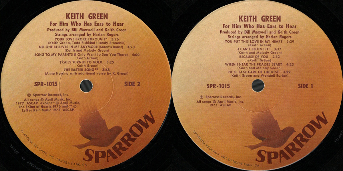 Keith Green will primarily be remembered as the prophetic voice in ccm, with a message that focused on obedience and commitment to God. He also happened to be a fine pianist and songwriter, no doubt due in part to his background in the secular music industry prior to his conversion. For Him Who Has Ears To Hear is one of ccm’s finest debuts – a Jesus music classic in an orchestrated keyboard rock, pop and ballads style comparable to artists like Billy Joel or Elton John. Filled with the presence of new-found joy, the album introduced such time-honored songs as «You Put This Love In My Heart», «Because Of You», «When I Hear The Praises Start» and of course the stirring ballad «Your Love Broke Through» (co-written with Todd Fishkind and Randy Stonehill). «He’ll Take Care Of The Rest» showed Keith’s humorous side. while «No One Believes In My Anymore (Satan’s Boast)» began the tradition of each album having a “devil song”. Closes with a vibrant cover of 2nd Chapter’s «Easter Song» with an additional verse written by Keith. Includes assistance from Bill Maxwell, Mike Deasy, Harlan Rogers, Danniebelle and several others. [Ken Scott, The Archivist, 4th Edition]