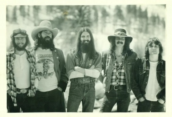Mason Proffit: (L-R) Mark Walker, Michael B. Smith, John Michael Talbot, Terry Talbot, and Jon Linn (August 1, 1954 – October 17, 2000). (Tim Ayres not present.) Picture shot by Larry Norman at Vail, Colorado, ca 1974. Norman enlisted Mason Proffit as the session band for his 1976-release, In Another Land, as well as Randy Stonehill’s Welcome to Paradise.
