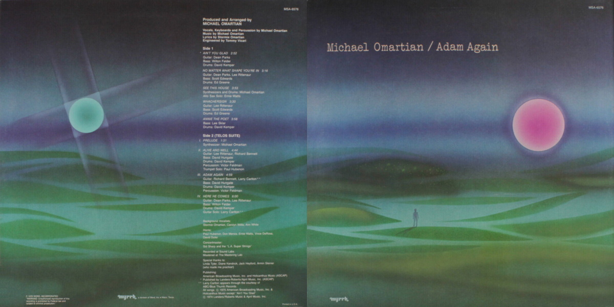 Fine follow-up retains a professional sound despite the lack of mainstream label attention this time. The progressive influence is still present but not quite as apparent. Instrumental solo excursions can be found on the lengthy prog-edged selections «Alive And Well» (sung first-person from the perspective of Satan) and «Here He Comes», the latter recounting the return of Christ “through the smog” – both songs are part of side two’s ‘Telos Suite’. Not quite the ‘70s FM radio sound, but not really top-40 pop-rock either. Omartian’s unique jazz-influenced keyboard-driven rock finds a nice middle ground on cuts like «Ain’t You Glad», «Annie The Poet», «No Matter What Shape You’re In» and the ballads «See This House» and «Adam Again». Tastefully orchestrated with strings and horns at times and there’s even a catchy dated disco tune called «Whatchersign», a humorous knock on astrology. Guitar whiz Larry Carlton graces a couple cuts. [Ken Scott, The Archivist, 4th Edition]