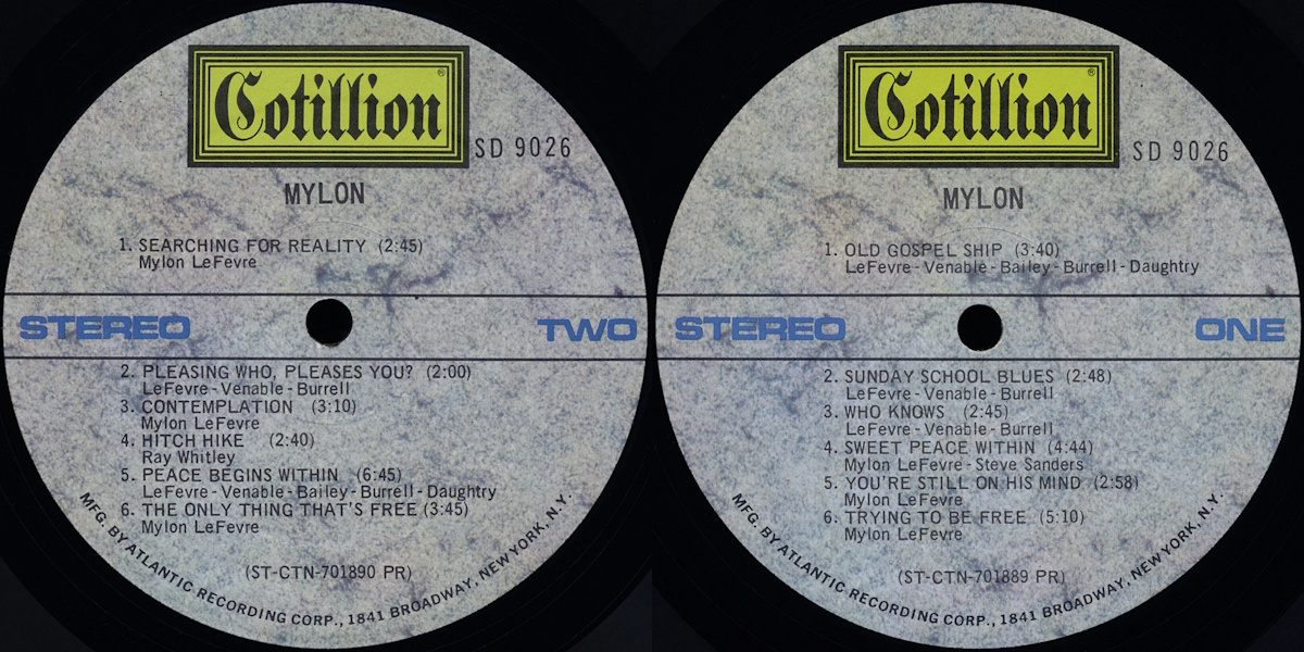 Mylon – Cotillion 44100. Contemplation (Mylon LeFevre, BMI) / Peace Begins Within (Mylon LeFevre, BMI).