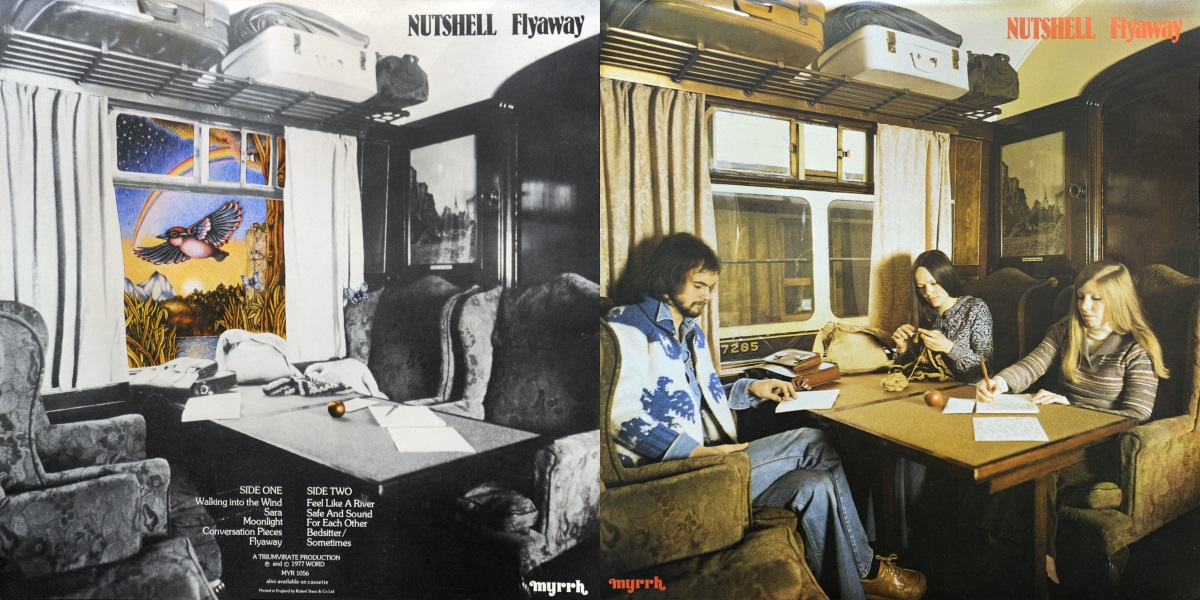 Flyaway would introduce Nutshell’s soft folky string-orchestrated style and oh-so-mellow harmonies to American ears (Myrrh MSA 6592). Slightly more polished at times than In Your Eyes, nevertheless a pleasant mix of ballads («Sara», «Conversation Pieces»), playful lighthearted folk («Moonlight»), acoustic soft rock («For Each Other») and pop (the title track). «Walking Into The Wind» and «Feel Like A River» are two of their loveliest most endearing songs, both delicately enriched by Pam’s autoharp. Also of note is the closing «Bedsitter/Sometimes», a climatic eight-minute ballad that builds with artful use of synthesizer. [Ken Scott, The Archivist, 4th edition]
