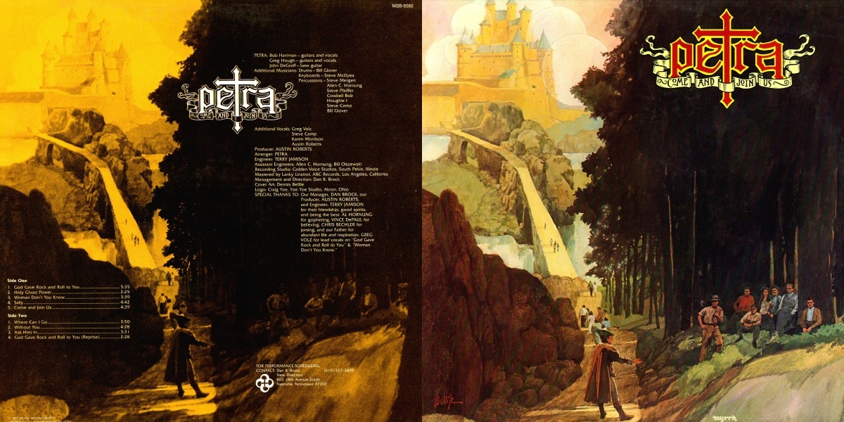 Trivia: After the release of their first album, Myrrh asked the band to record an album aimed principally at non-Christians. Most of the songs in the album reflect that goal, particularly the title song. Petra’s main songwriter Bob Hartman wanted the album to be named “God Gave Rock and Roll to You”, the title of the only cover song included on the album, a feelgood anthem written by Argent member Russ Ballard, inspired by the British pop singer Cliff Richard (the original lyrics actually include a reference to Richard, known for his outspoken Christianity). However, Myrrh deemed it inappropriate at the time, and forced Hartman to change the title. Also, Hartman had written a song called “Killing My Old Man” for this album, but the finished studio track was dropped by the label before the manufacturing of the official album (though featured on the test pressing). (The band later included the song on their fourth album, Never Say Die, tough.) Upon being released, Come and Join Us didn’t sell well. As a result, Myrrh dropped Petra from its label.