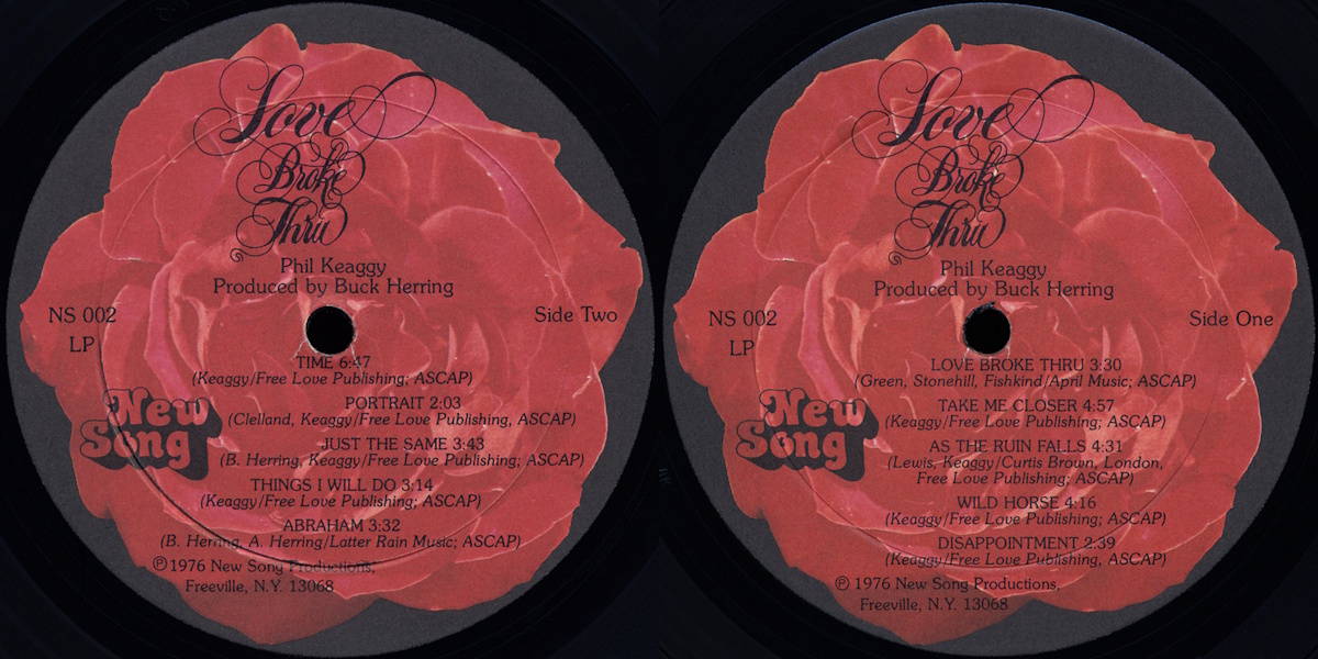 Note: Simultaneously released on 8-track tape, cassette, and 12-inch vinyl LP by NewSong Records. Love Broke Thru was digitally remastered by Word in 1990 and re-issued together with Keaggy’s previous effort What a Day on both cassette and CD. Remastered and re-issued in 2025 as Love Broke Thru: 50th Anniversary Deluxe Edition. (This remastered and expanded edition includes 2 LPs – the re-mastered original album as well as the best of the bonus material – and 4 CDs of bonus tracks in a custom tri-fold package with a 20-page booklet featuring rare photos & liners, all inside a hinged box.) Available at Bandcamp: https://pk-deluxestudiovocalalbums.bandcamp.com/album/love-broke-thru-remastered