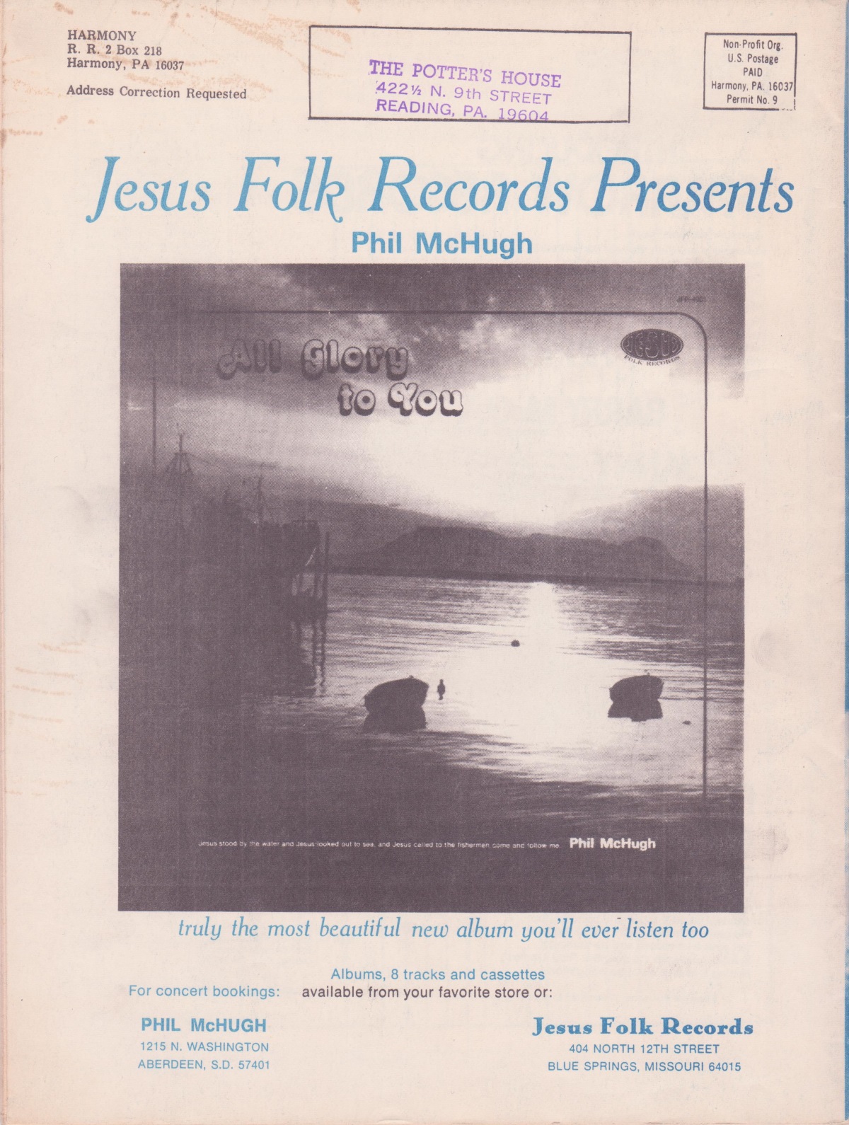 A full-page advertisement for Phil McHugh’s All Glory to You was featured on the back cover of the March/April 1976 issue of Harmony Magazine.