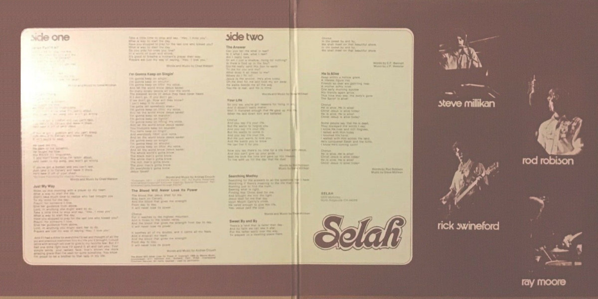 The self-titled debut album by the American pop/rock band Selah was released on Pinebrook in 1975. Also released on Singcord Recordings, a subsidiary of The Zondervan Corporation. The album was recorded and mixed by Marshall Sanders at Pinebrook Recording Studio in Alexandria, Indiana; with Dan Posthuma producing. (Pinebrook opened in the early 1970’s, and was owned by Gaither Music Group.)