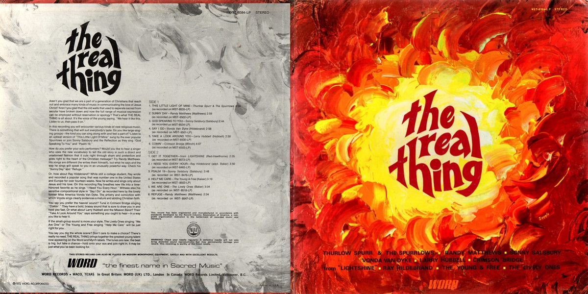 The Real Thing is a multi-artist compilation released on Word Records in 1972. WORD – the finest name in Sacred Music.
