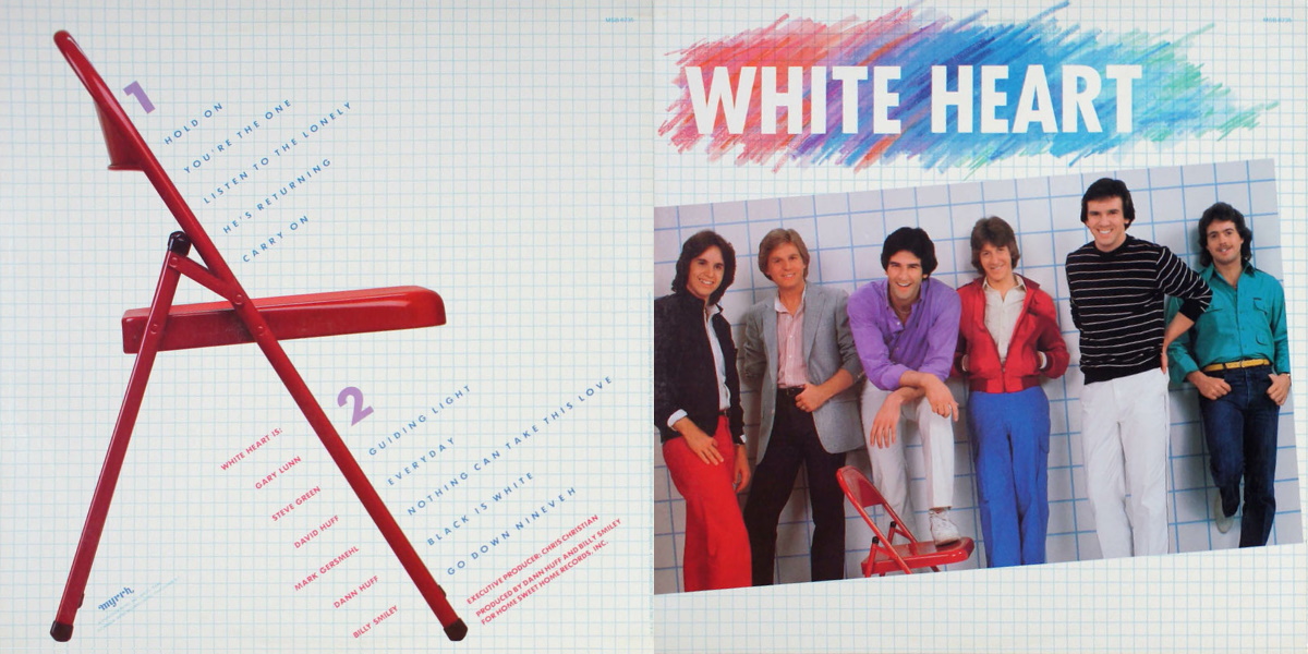 A full-page advertisement for White Heart's self-titled debut album was featured in the February 1983 issue of CCM Magazine.A full-page advertisement for White Heart’s self-titled debut album was featured in the February 1983 issue of CCM Magazine. (L-R: Gary Lunn, Steve Green, David Huff, Mark Gersmehl, Dann Huff, Billy Smiley)