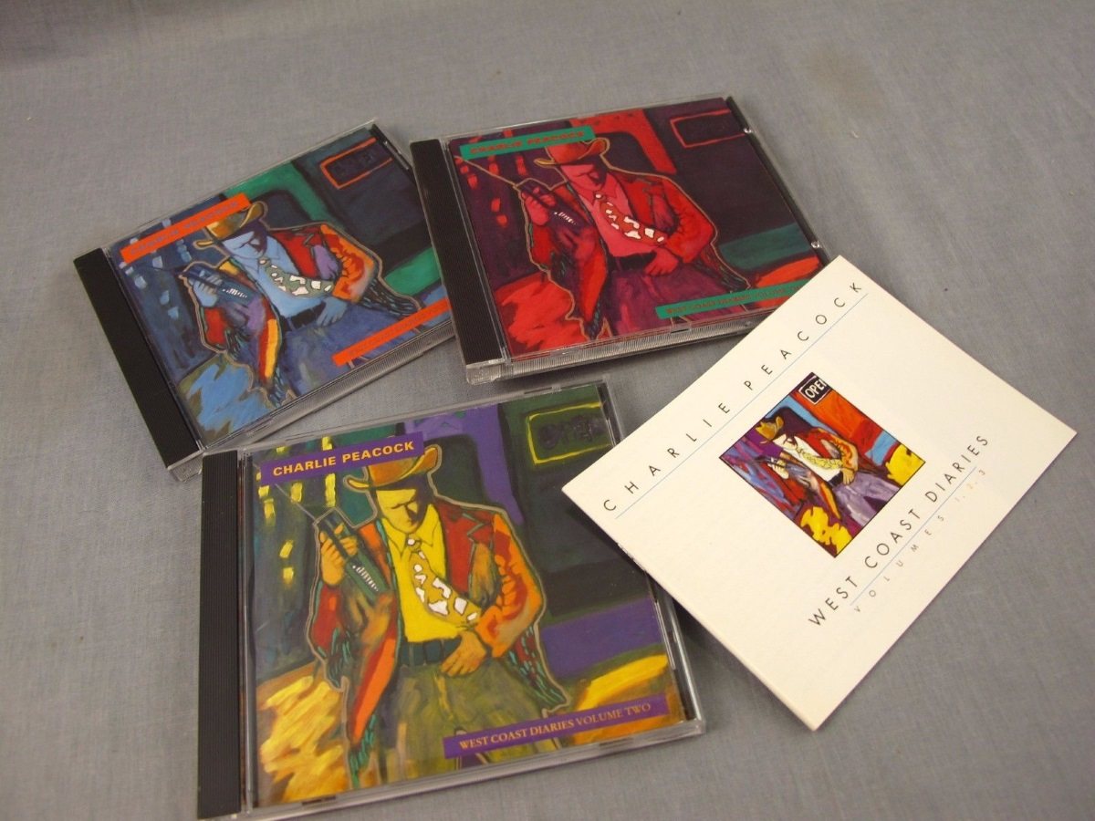West Coast Diaries is 3CD Box Set by the American singer, songwriter, keyboardist, and producer Charlie Peacock, released on Sparrow Records in 1992. A 32 page booklet of memoirs and personal photographs is enclosed. Fans and critics alike have hailed Charlie Peacock’s West Coast Diaries projects as hallmarks of heartfelt expression, honest emotion, and artistic grace. Originally released independently, the three volume WCD’s steadily increased in popularity to the point that a major release was unavoidable (note on the back of the box).