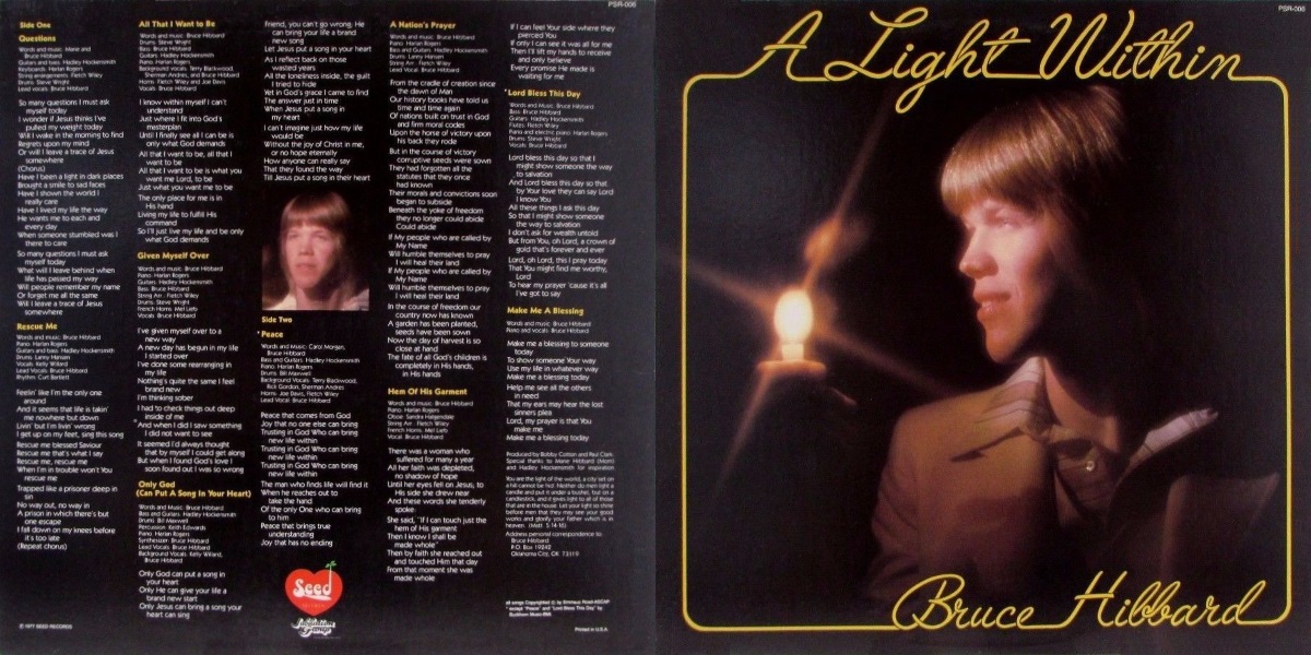 A Light Within is the debut album by the American singer and songwriter Bruce Hibbard, independently released on Seed Records in August 1977, through the Jubilation Group distribution arm of Myrrh Records, a division of Word. The album was produced by Bobby Cotton and Paul Clark. All songs written by Bruce Hibbard except track A1 co-written with Marie Hibbard and track B1 co-written with Carol Morgan.