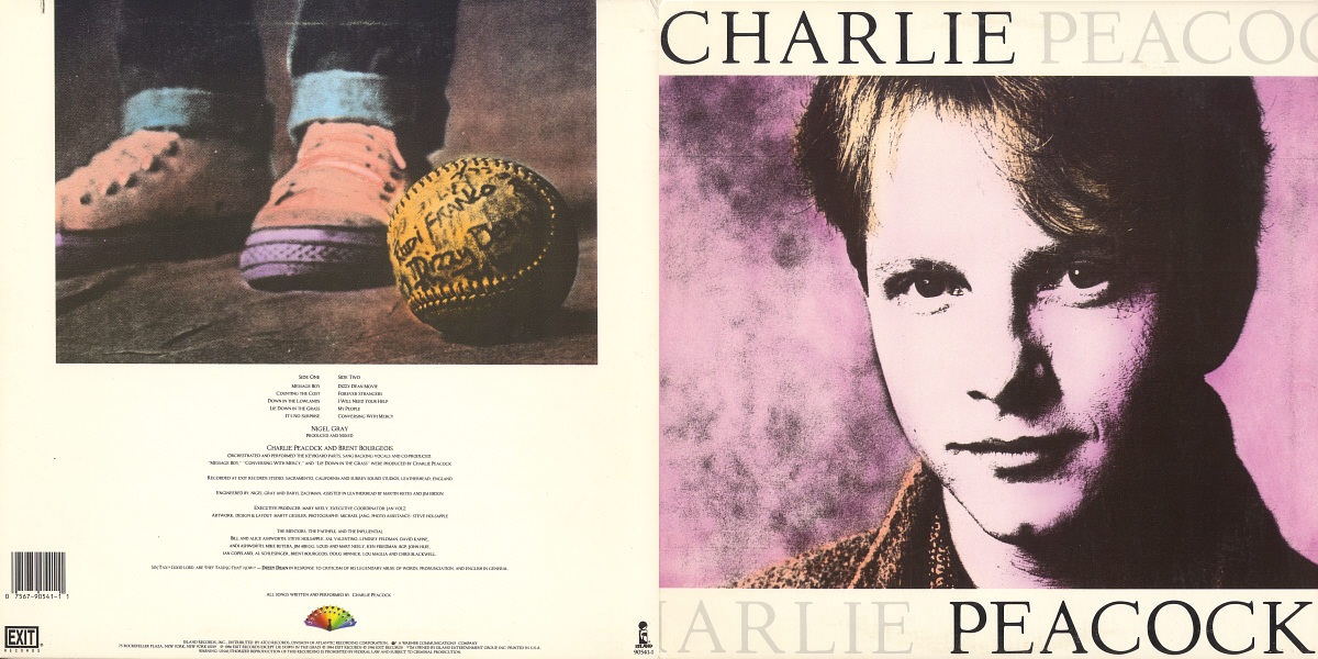 The self-titled, sophomore full-length album by the American singer, songwriter, keyboardist, and producer Charlie Peacock was released by Exit Records in September 1986, manufactured by Island Records and distributed by Atco Records in the US, a division of Atlantic Recording Corporation. (Distributed by Atlantic Records Corp., a Warner Communications Company.) The album was recorded by Nigel Gray and Daryl Zachman at Exit Studio in Sacramento, California; and as well over in England at Surrey Sound Studios in Leatherhead; and was produced and mixed by Gray. (Nigel Gray was a British producer known for his works with British bands like The Police and Siouxsie and the Banshees.) Co-produced by Charlie Peacock and Brent Bourgeois who also orchestrated and performed the keyboard parts and sang backing vocals. All songs written by Charlie Peacock. A review of the album featured in the “recommend section” of the October 25, 1986 issue of Billboard Magazine, stated that a “talented singer/songwriter/keyboardist offers auspicious debut with a sound that demonstrates the influence of the Police. Strong throughout.”