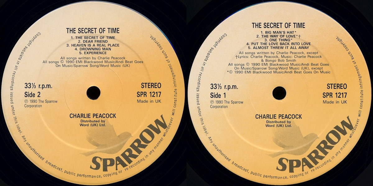 Note: Simultaneously released on cassette, 12-inch vinyl LP, and CD by Sparrow Records.