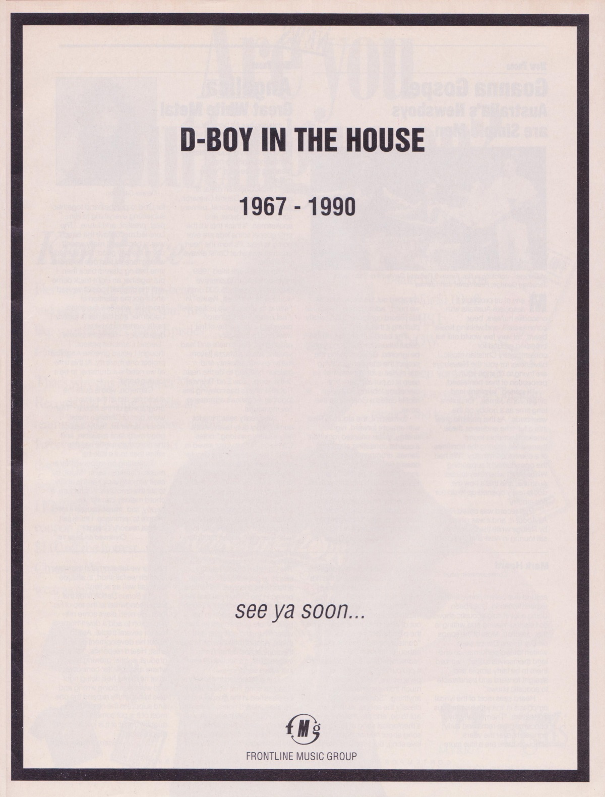 We know that D-Boy can no longer tour nor make videos, but it would be criminal for Frontline to keep the fury and finesse of D-Boy a secret outside the Christian market. It’s THAT great. [Jamie Lee Rake, CCM, December 1990]